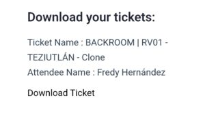 Al finalizar, descarga tu acceso virtual en la sección inferior “Download your tickets” en “Download Ticket”. La opción no aparecerá en negritas o dentro de un botón.